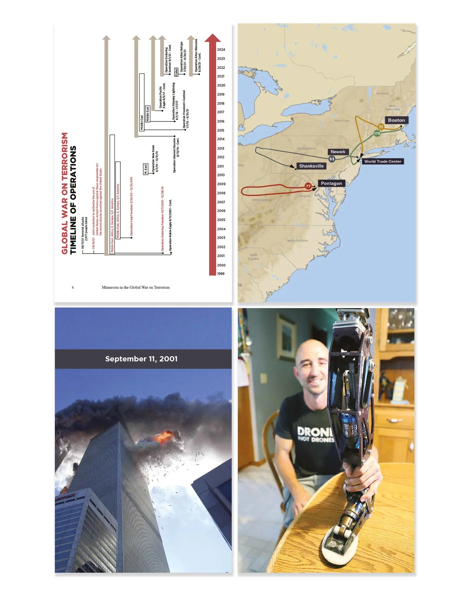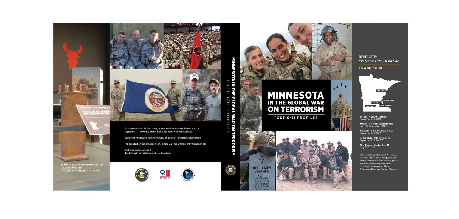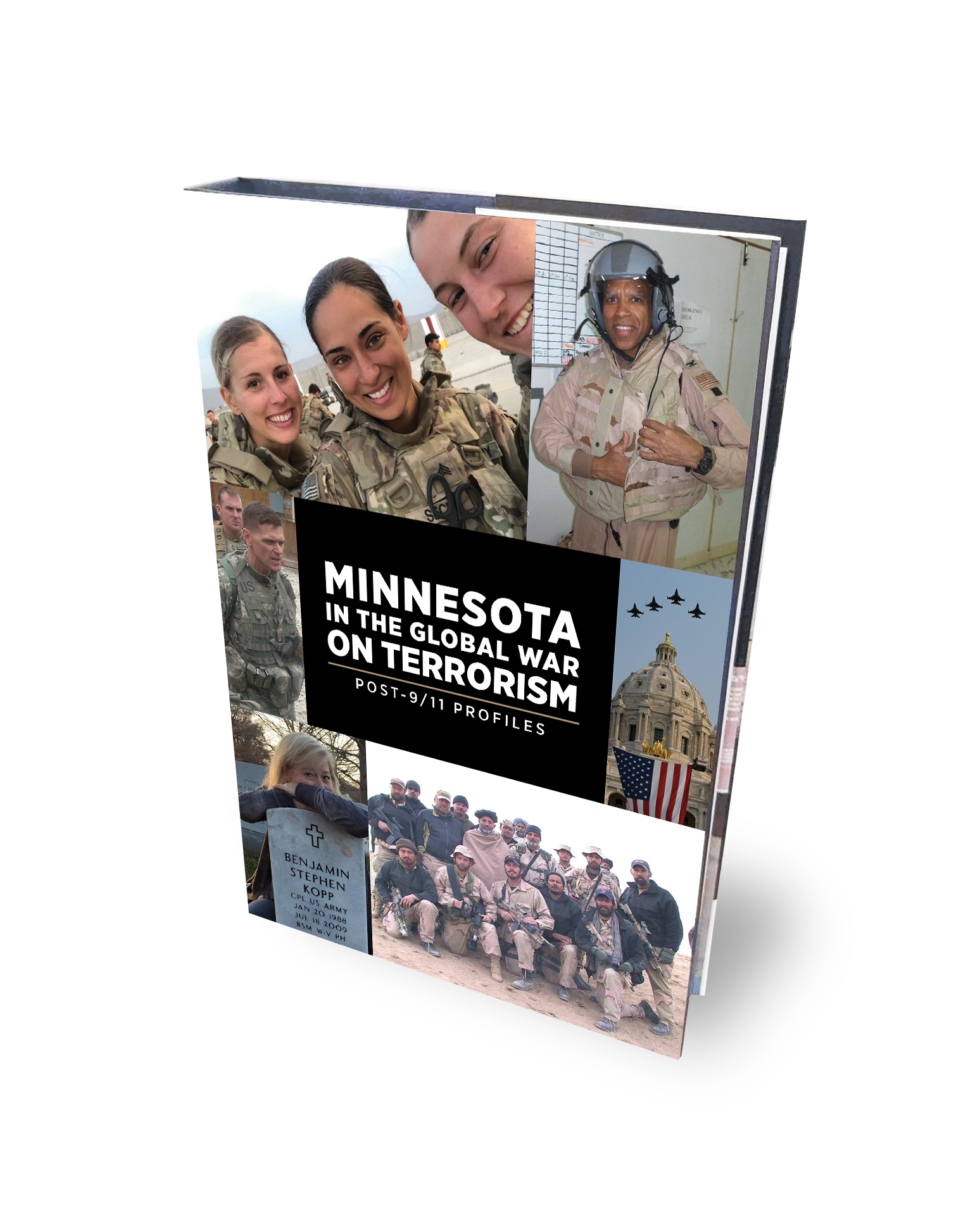 Layout and design for a comprehensive book and e-book documenting Minnesota’s contributions to the Global War on Terror (2001–present). The State of Minnesota has a book for each of the wars Minnesota has been a part of since the Civil War. This first edition was to be distributed to libraries across Minnesota, with the e-book available through the museum’s website.